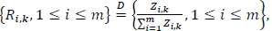 Assume that the Ui's and the Ri,ks are same as in Section 1 and are independent of X1, X2,... Define